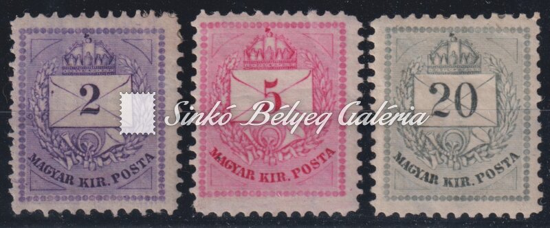 1881. Színesszámú krajcáros 2kr, 5kr, 20kr bélyegek
