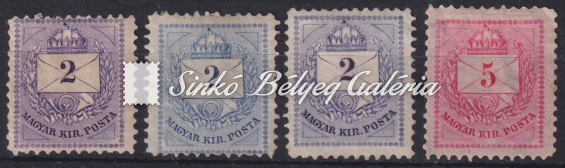 Leírás | 1881. Színesszámú krajcáros bélyegek B 11 1/2 fogazattal! 4db bélyeg lemezhibákkal! / 1881. Colour number krajcar stamps with B 11 1/2 perforation! 4 stamps with plate failures! |
