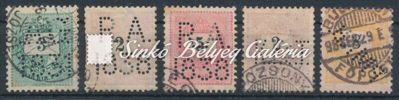 1881-1898 közötti krajcáros bélyegek Perfin lyukasztással
