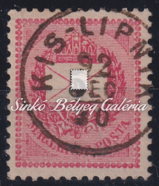 Leírás | 1889. Feketeszámú krajcáros 5kr bélyeg E 12:11 3/4 fogazattal, KIS-LIPNIK (SK) lebélyegzéssel! 100Gp / 1889. Black number krajcar 5kr stamp with E 12:11 3/4 perforation and KIS-LIPNIK (SK) cancellation! 100Gp |