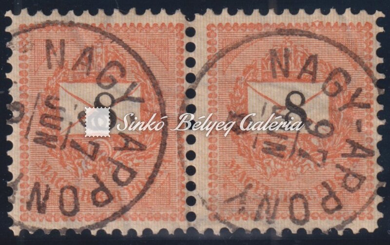1889. Feketeszámú krajcáros 8kr bélyegpár, NAGY-APPONY