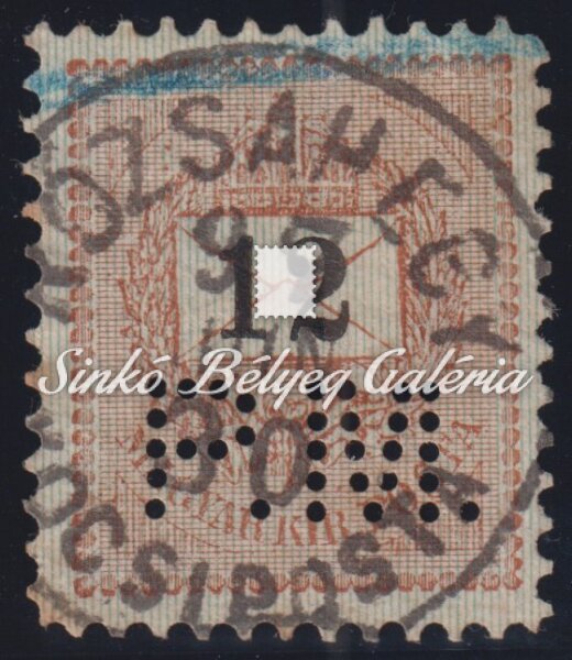 Leírás | 1889. Feketeszámú krajcáros 12kr bélyeg 11 1/2 fogazattal, RÓZSAHEGY/KOCSIPOSTA (SK) lebélyegzéssel, P.M. perfinlyukasztással! / 1889. Black number krajcar 12kr stamp with 11 1/2 perforation, ROZSAHEGY/KOCSIPOSTA (SK) cancellation and P.M. perfin punching! |