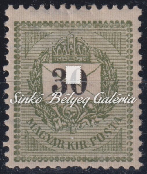 Leírás | 1889. Feketeszámú krajcáros 30kr bélyeg E 12:11 3/4 fogazattal. / 1889. Black number krajcar 30kr stamp with E 12:11 3/4 perforation. |