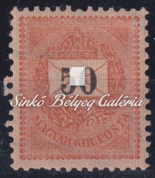 Description | 1889. Feketeszámú krajcáros 50kr bélyeg E 12:11 3/4 fogazattal. / 1889. Black number krajcar 50kr stamp with E 12:11 3/4 perforation. |