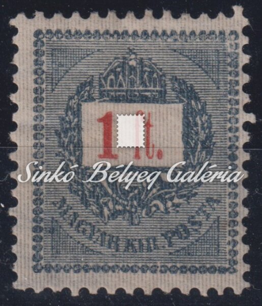 Leírás | 1889. Feketeszámú krajcáros 1Ft bélyeg E 12:11 3/4 fogazattal. / 1889. Black number krajcar 1Ft stamp with E 12:11 3/4 perforation. |