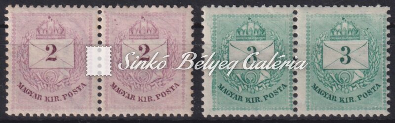 Leírás | 1890. Színesszámú krajcáros II. lemez 2kr és 3kr bélyegek vízszintes párban! / 1890. Colour number krajcar II. plate 2kr and 3kr stamps in horizontal pairs! |