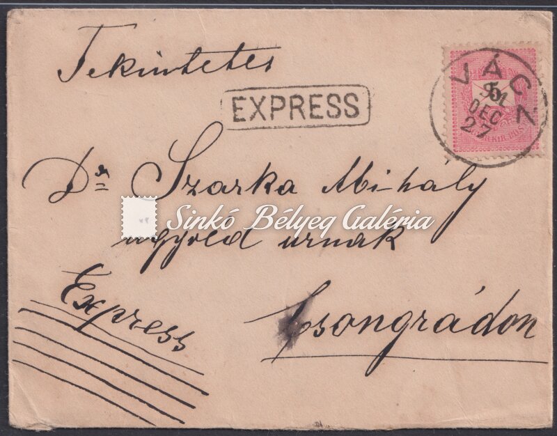 1891.12.27. Expressz távolsági levél VÁCZ-CSONGRÁD