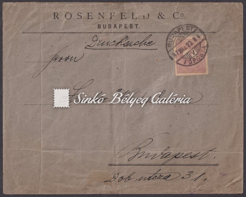 Description | 1897.05.23. Helyi levél BUDAPESTen. Kivágott díjjegyes 2kr bélyeggel bérmentesítve! R! / 1897.05.23. Local letter in BUDAPEST. Franked with a 2kr stamp cut out of a postal stationery envelope! R! |