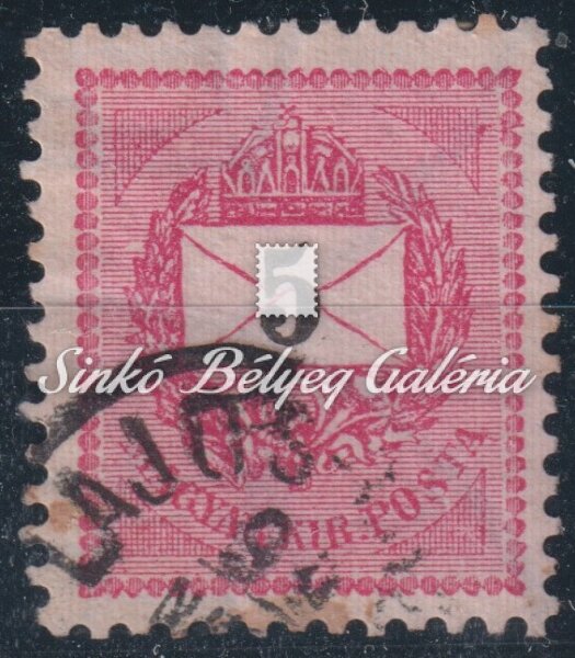 Leírás | 1898. Feketeszámú krajcáros 5kr bélyeg E 12:11 3/4 fogazattal. Vízjel hiba! A korona tartólába hiányzik! / 1898. Black number krajcar 5kr stamp with 12:11 3/4 perforation. Faulty watermark! The support leg of the crown is missing! |