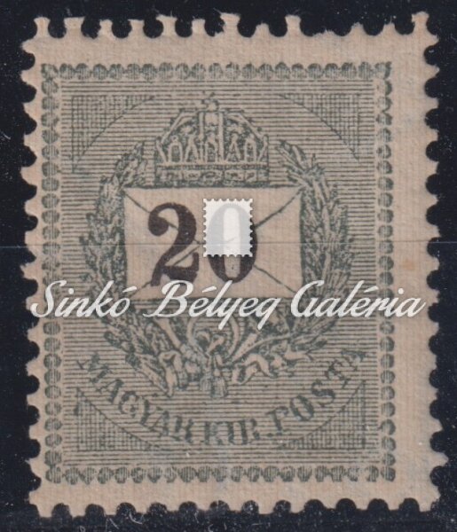 Leírás | 1898. Feketeszámú krajcáros 20kr bélyeg E 12:11 3/4 fogazattal. / 1898. Black number krajcar 20kr stamp with E 12:11 3/4 perforation. |