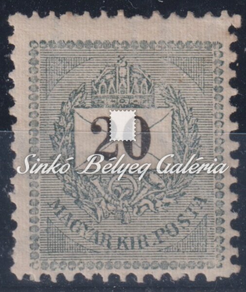 Leírás | 1898. Feketeszámú krajcáros 20kr bélyeg E 12:11 3/4 fogazattal. / 1898. Black number krajcar 20kr stamp with E 12:11 3/4 perforation. |