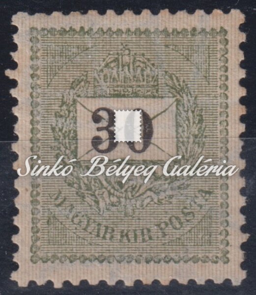 Leírás | 1898. Feketeszámú krajcáros 30kr bélyeg E 12:11 3/4 fogazattal. / 1898. Black number krajcar 30kr stamp with E 12:11 3/4 perforation. |