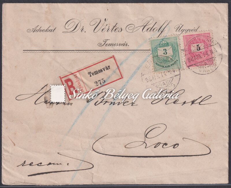 1898.04.14. Helyi ajánlott levél TEMESVÁR
