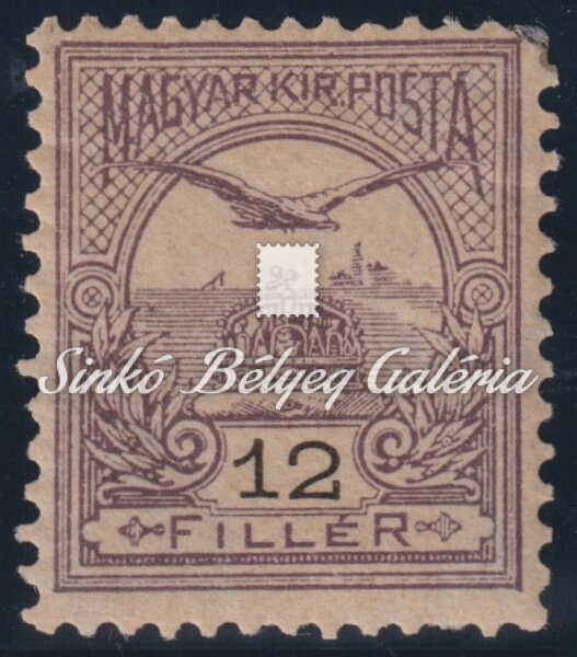 Leírás | 1900. Turul 12f bélyeg c, állású számvízjellel! Gyenge sarokfog! / 1900. Turul 12f stamp with c, position number watermark! Faulty corner perforation! |