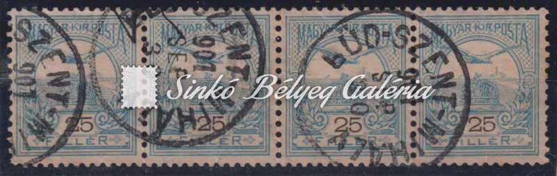 Leírás | 1900. Turul 25f bélyegek 4-es csíkban BŰD-SZENT-MIHÁLY lebélyegzéssel! / 1900. Turul 25f stamp in a stripe of 4 with BUD-SZENT-MIHALY cancellation! |