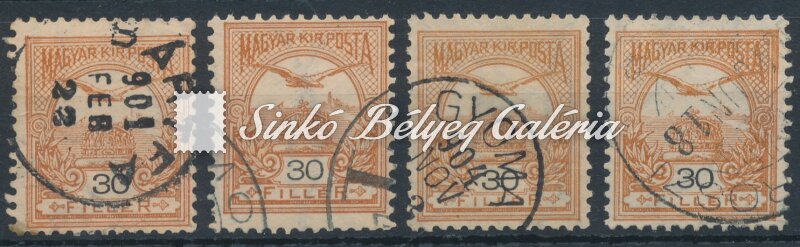 Leírás | 1900. Turul 30f bélyegek mind a 4 féle vízjelállással! Katalógus érték: 9.800 HUF / 1900. Turul 30f stamps with all the 4 position watermarks! Catalogue value: 9.800 HUF |