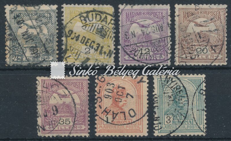 Description | 1900. Turul 7db bélyeg c, állású számvízjellel. Katalógus érték: 54.000 HUF / 1900. Turul 7 stamps with c, position number watermark. Catalogue value: 54.000 HUF |