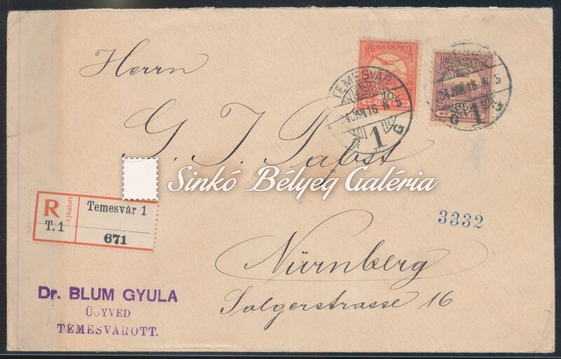 1904.01.16. Ajánlott távolsági levél TEMESVÁR-NÜRNBERG