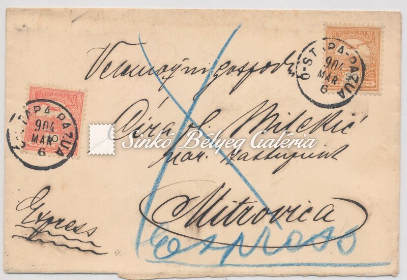 1904.03.06. Expressz távolsági levél. Ó-STARA PAZUA - MITROVICA