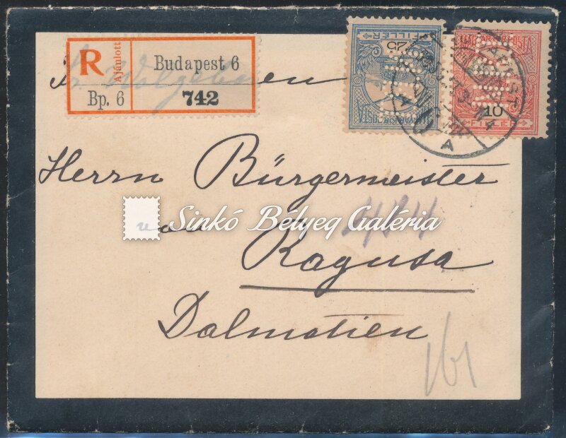1905.10.03. Ajánlott perfin levél külföldre, BUDAPEST-RAGUZA