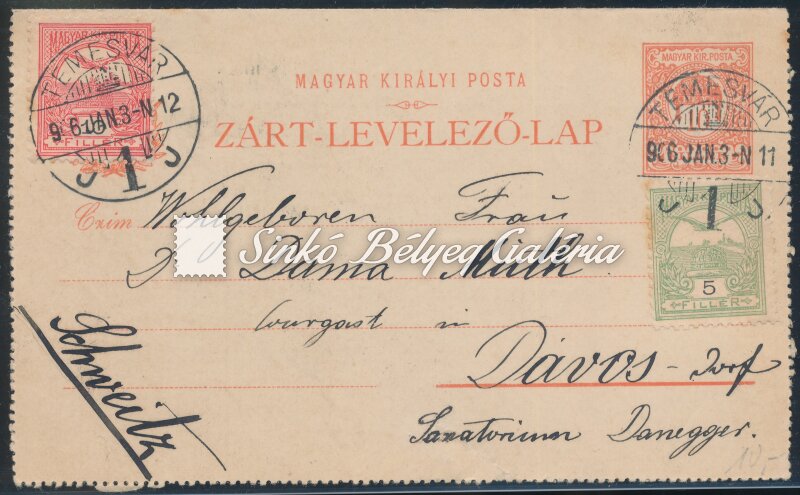 1906.01.03. Távolsági levél TEMESVÁR-DAVOS DORF