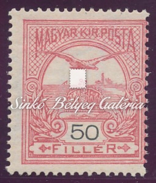 Leírás | 1908. Turul 50f bélyeg 2-es vízjelállással, képbe fogazva! / 1908. Turul 50f stamp with 2nd watermark position, perforated into the picture! |