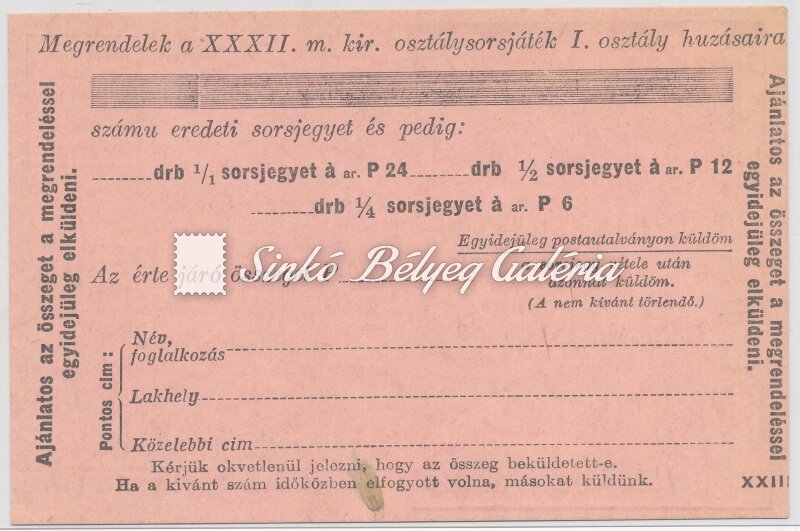25. Sinkó Filatéliai Árverés / Philatelic Auction Aukció vége: 4 nap 7 ó : 1 p4 nap 7 ó : 1 p