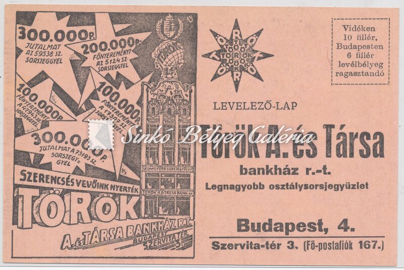 Leírás | 1910. Török A. és Társa levelezőlap 10f vagy 6f. / 1910. Torok A. and Tarsa postcard 10f or 6f. |
