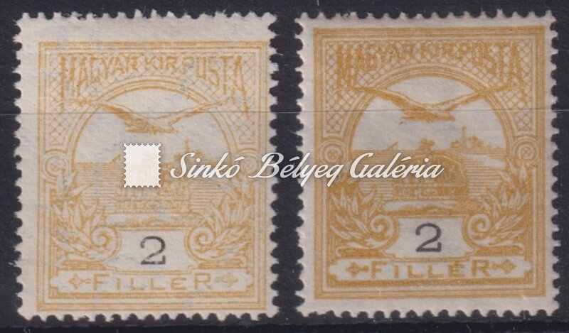 Leírás | 1913. Turul 2f bélyeg A álló vízjellel, jelentős színkülönbséggel! / 1913. Turul 2f stamp with A standing watermark, and significant colour difference! |