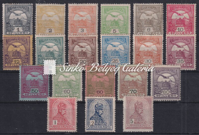Leírás | 1913. Turul A sor álló vízjellel! Katalógus érték: 20.000 HUF / 1913. Turul A set with standing watermark! Catalogue value: 20.000 HUF |