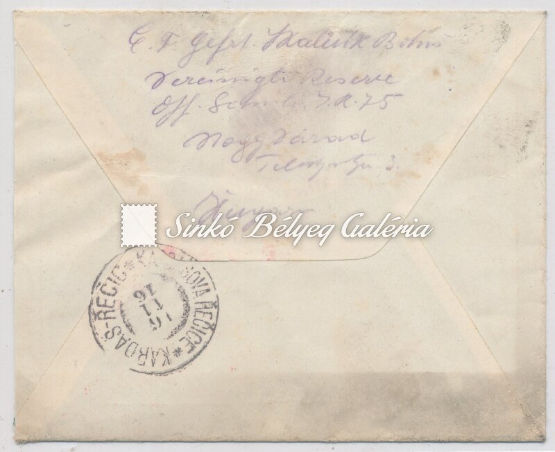 Leírás | 1916.11.13. Expressz ajánlott távolsági levél NAGY-VÁRAD - KARDAS RECICE között. 1K Turul bélyeggel bérmentesítve. / 1916.11.13. Express registered long distance letter between NAGY-VÁRAD - KARDAS RECICE. Franked with 1K Turul stamp. |