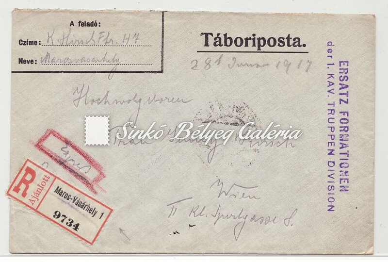 1917.01.28. Tábori posta expressz ajánlott levél MAROSVÁSÁRHELY-WIEN