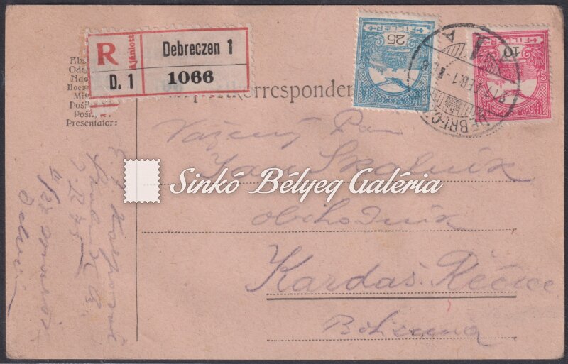 1917.02.01. Ajánlott levél DEBRECZEN-KARDAS RECICE