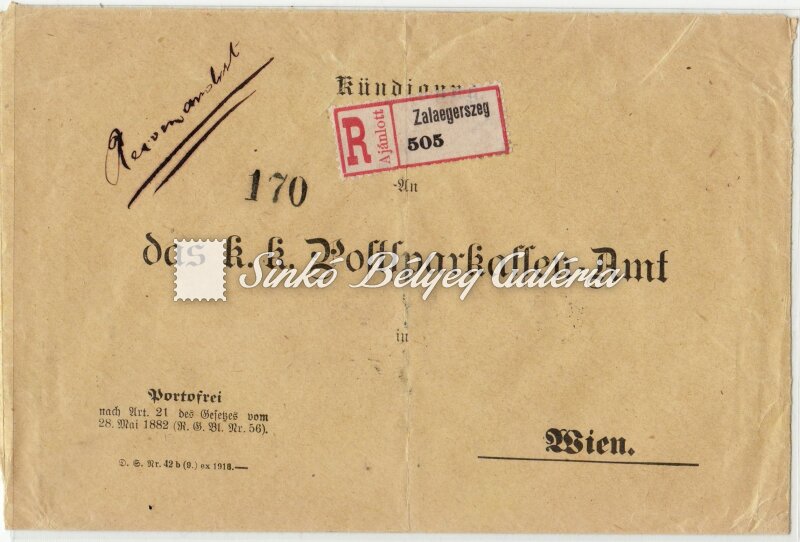 1917.12.02. Ajánlott távolsági levél ZALAEGERSZEG-WIEN