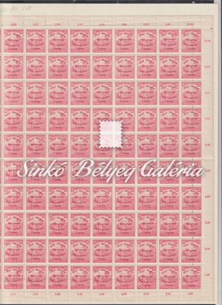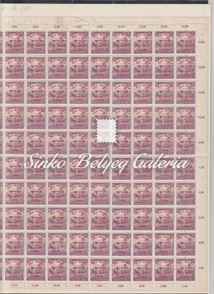 Leírás | 1917. Margitsziget Hajtott 100-as ívsor (100 sor) Katalógus érték: 50.000 HUF / 1917. Margaret Island Folded full sheet set (100 sets) Catalogue value: 50.000 HUF |