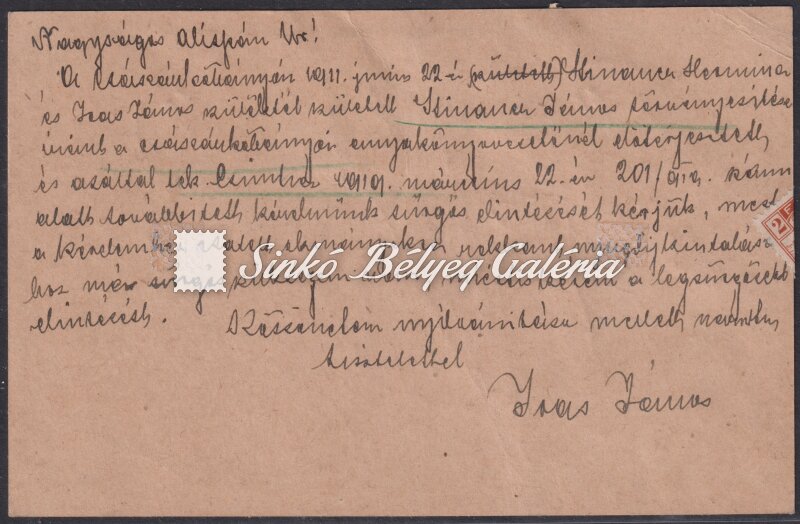 Leírás | 1919.04.17. Ajánlott távolsági levél CSÁSZÁRKŐBÁNYA-MAGYARÓVÁR között. 8f díjjegyes levelezőlap 26f díjkiegészítéssel bérmentesítve! / 1919.04.17. Registered long distance letter between CSASZARKOBANYA-MAGYAROVAR. 8f postal stationery postcard franked with 26f fee supplement! |