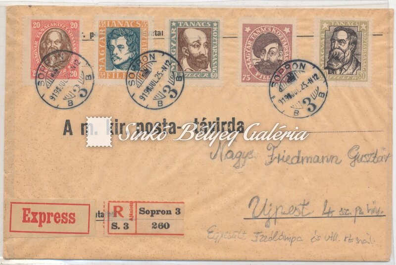 1919.07.25. Expressz ajánlott távolsági levél SOPRON-ÚJPEST
