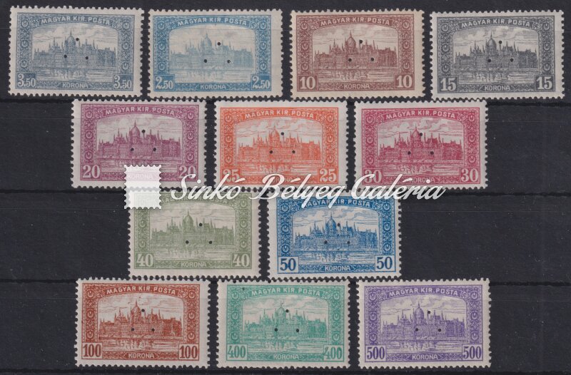 Leírás | 1921/23. Parlament sor hármaslyukasztással! / 1921/23. Parliament set with triple hole punching! |