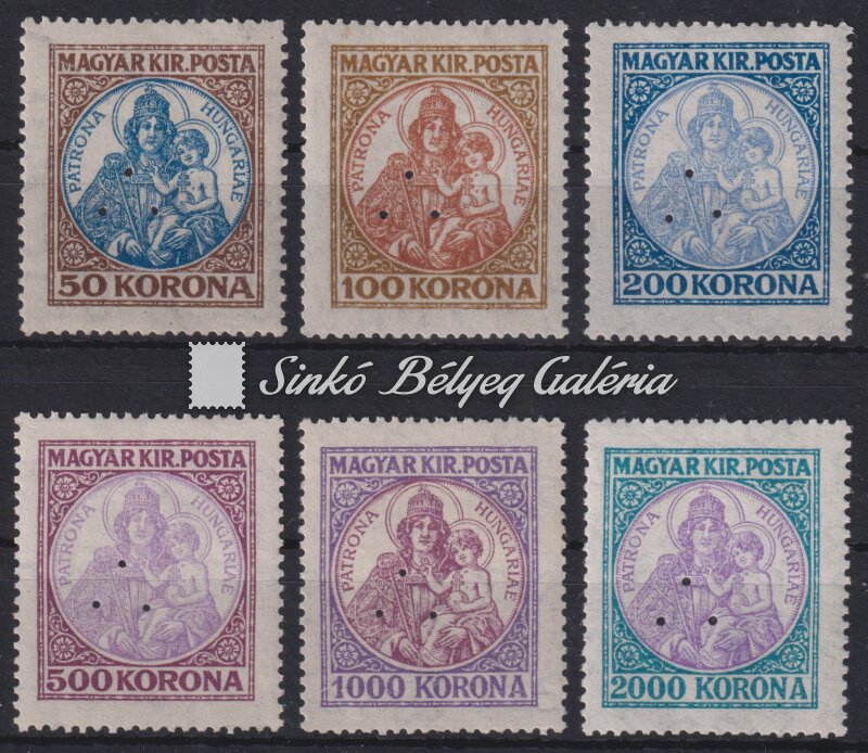 Leírás | 1921/25. Koronás Madonna hármaslyukasztással! / 1921/25. Crowned Madonna with triple hole punching! |
