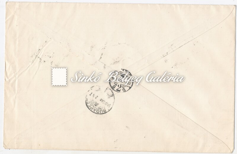 Leírás | 1940. Kormányzói 20 éves évforduló sorozat helyi ajánlott levélen elsőnapi alkalmi bélyegzővel. / 1940. Governors' 20th Anniversary set on a local registered letter, with first day occasional cancellation. |