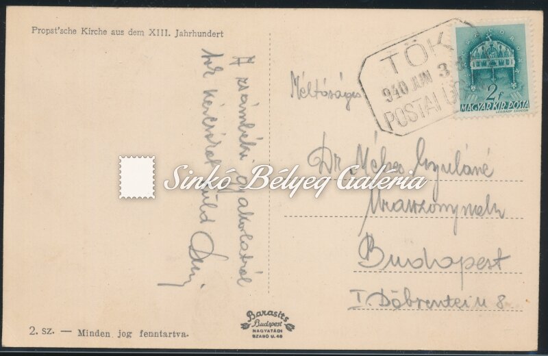 Leírás | 1940.06.03. Képeslap TÖK POSTAI ÜGYN. lebélyegzéssel! / 1940.06.03. Postcard with TOK POSTAL AGENCY cancellation! |