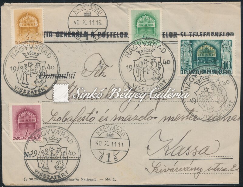 1940.10.11. Távolsági levél NAGYVÁRAD-KASSA