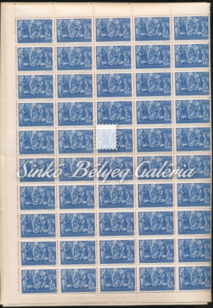 Leírás | 1943. Karácsony Hajtott teljes ívsor. (100 sor, 3 érték) / 1943. Christmas Folded full sheet set. (100 sets, 3 values) |