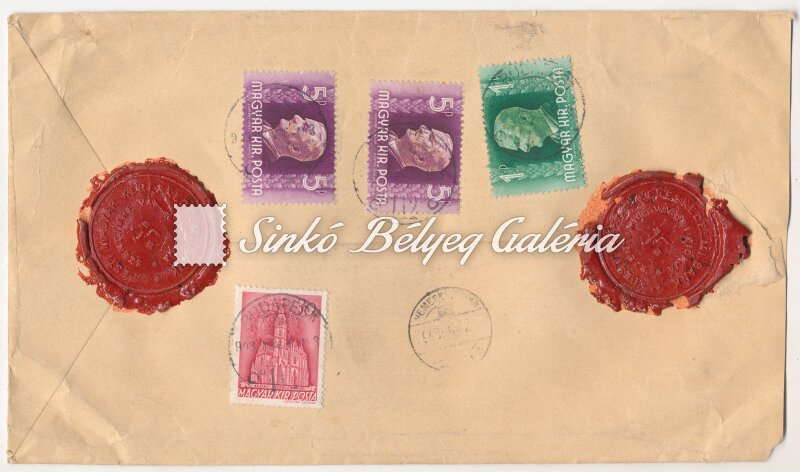 Leírás | 1943.11.26. Értéklevél BUDAPEST-NEMESNÁDUDVAR között. 11P 30f bérmentesítési díjjal. 2db 5P Horthy bélyeggel. / 1943.11.26. Registered parcel between BUDAPEST-NEMESNÁDUDVAR. With 11P 30f fare. With 2x5P Horthy stamp. |