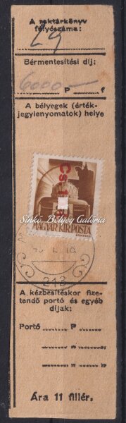 Leírás | 1946. Betűs (szöveges) Cs.10-I./80f bélyeg csomagszállító kivágáson! / 1946. Letter (textual) Cs.10.I./80f stamp on a piece of a parcel delivery! |