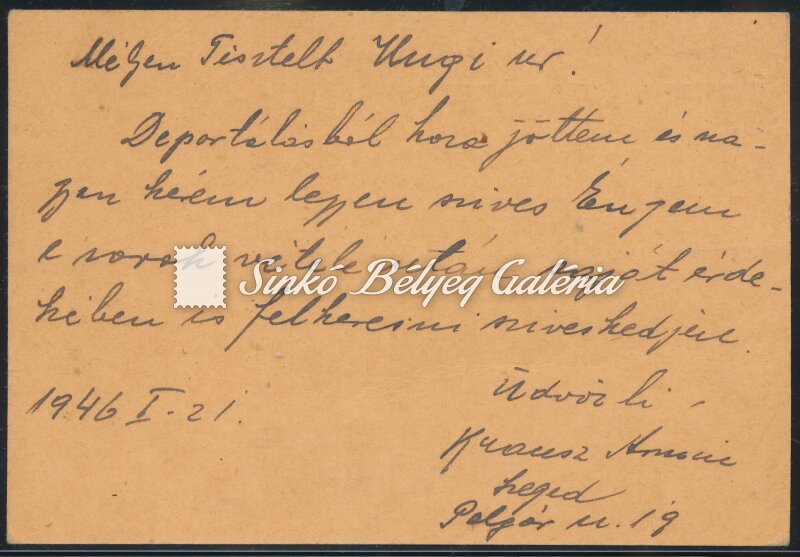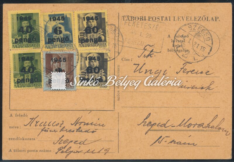 1946.01.21. 6. díjszabású Tábori Postai Levelezőlap SZEGED-MÓRAHALOM