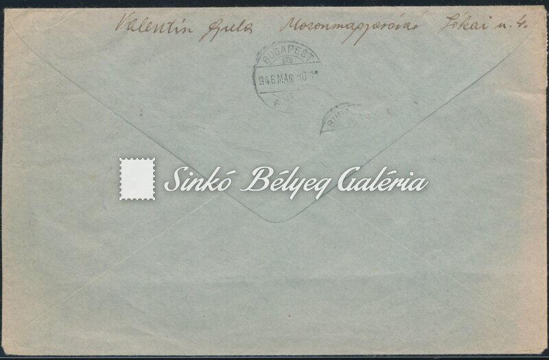 1946.03.08. 8. díjszabású levél MOSONMAGYARÓVÁR-BUDAPEST