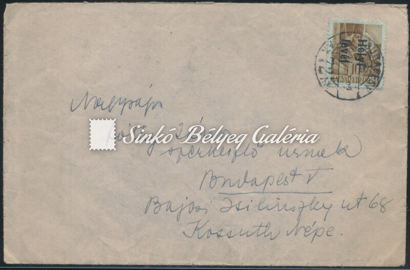 Leírás | 1946.05.07. 14. díjszabású helyi levél BUDAPESTen. 1db Betűs (szöveges) bélyeggel bérmentesítve. / 1946.05.07. 14. tariff local letter in BUDAPEST. Franked with a Letter (textual) stamp. |