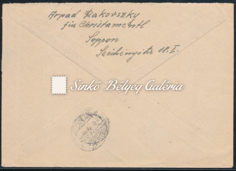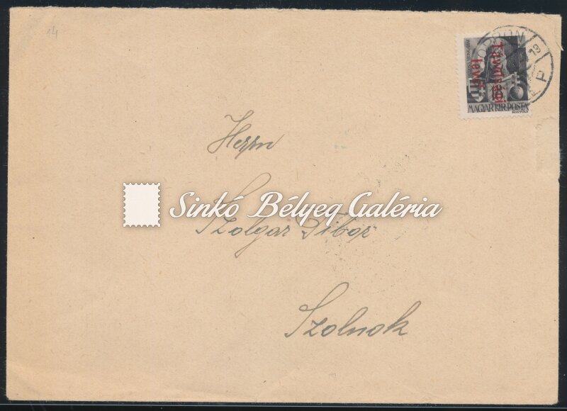 1946.05.19. 15. díjszabású távolsági levél SOPRON-SZOLNOK