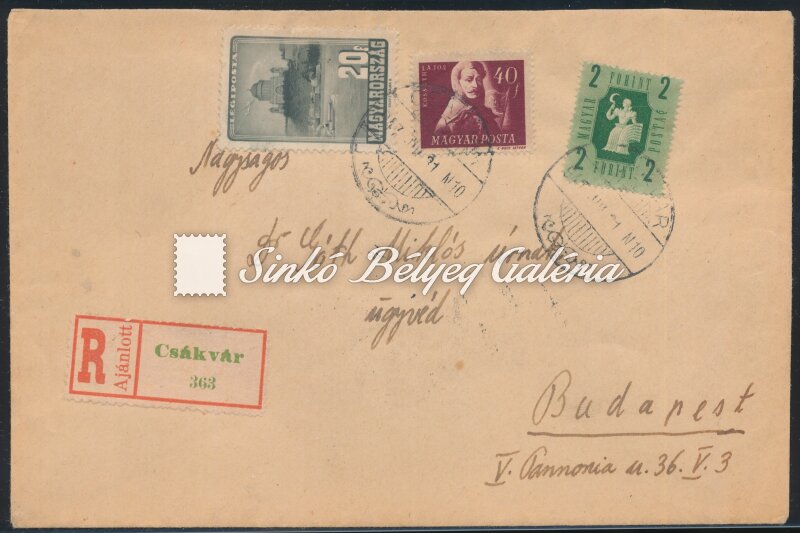 1947.05.31. Ajánlott levél CSÁKVÁR-BUDAPEST